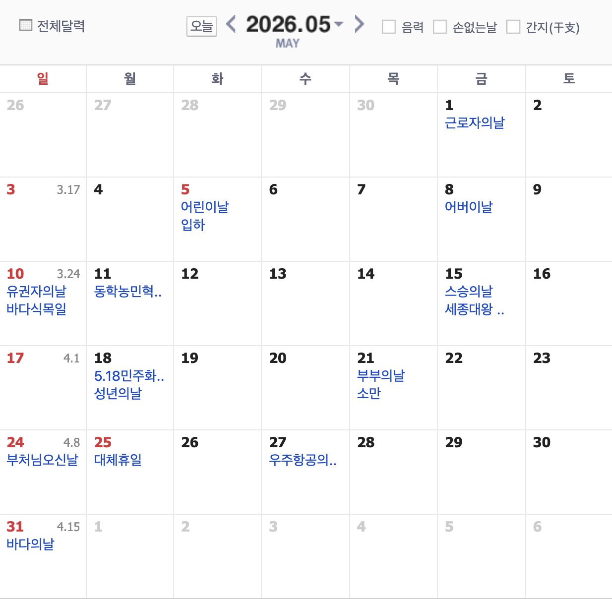 | 법정 공휴일 여부 | ✅ 법정 공휴일 (2026년부터) | ❌ 법정 공휴일 아님 (관공서 휴무 X) |